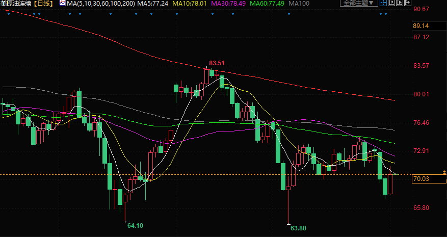 美原油交投于70美元/桶附近;油价周四上涨近4%,创下两周来最大涨幅,美国众议院通过暂停美国债务上限的法案,抵消了美国原油库存上升的影响。市场也将关注周日举行的OPEC+会议。