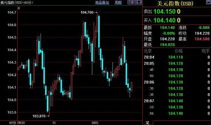 美元指数下跌0.08%至104.144。