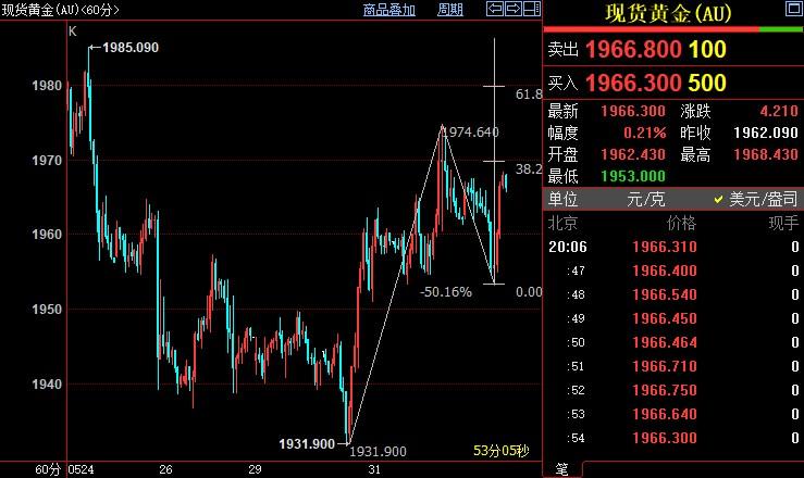 小时图上看,金价可能自1953美元开启上行走势,料升破38.2%目标位1970美元,并进一步上摸61.8%目标位1980美元。但金价很难大幅快速走强,毕竟美联储尚未结束紧缩周期。