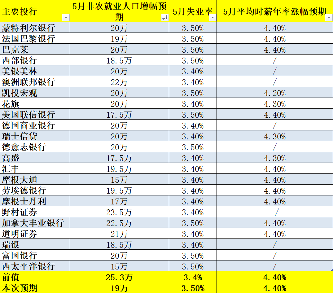 23家投行前瞻5月非农:增速料继续放缓,黄金有望继续上涨