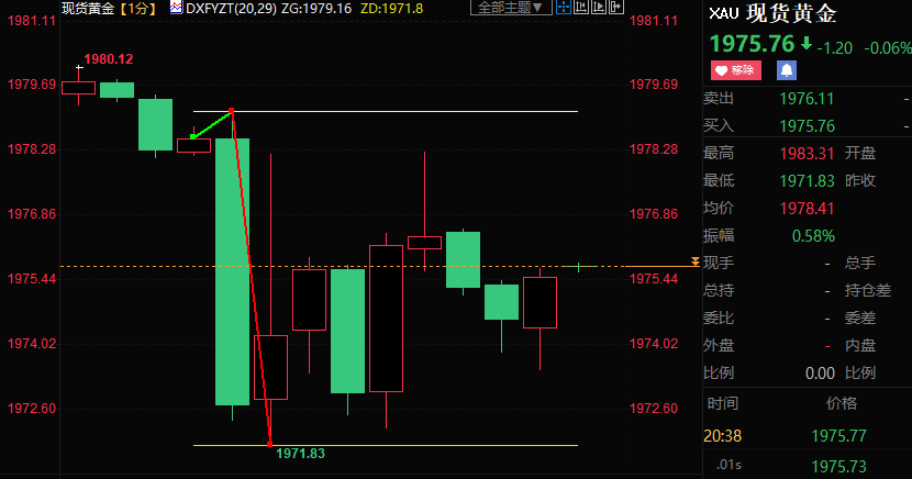 现货黄金探底6.7美元至1971.83美元/盎司后收复半数失地,交投于1975.42美元附近。