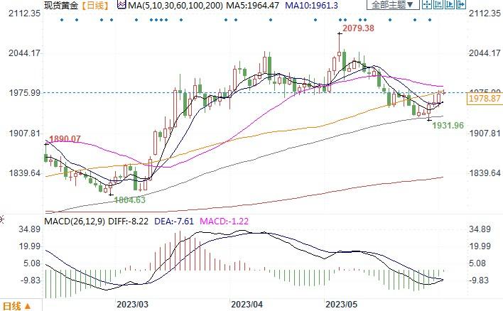 就目前而言,金价走势表明,黄金正忽略即将解决的债务上限之争。金价再次测试每盎司2000美元的阻力位。
