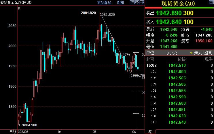 现货黄金下跌0.31%至1942.04美元/盎司;COMEX期金主力合约下跌0.60%至1957.8美元/盎司;
