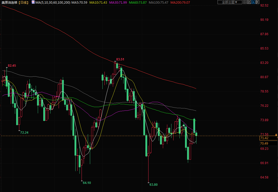 布伦特原油期货下跌0.6%,结算价报每桶76.29美元,美国原油期货下跌0.6%,结算价报每桶71.74美元。