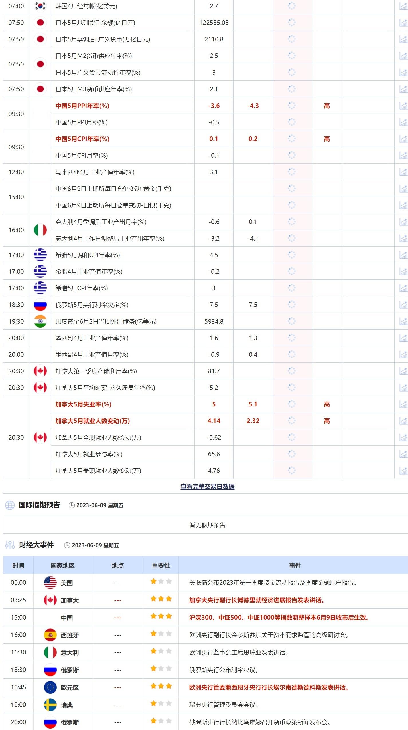 标题:6月9日重点数据和大事件前瞻