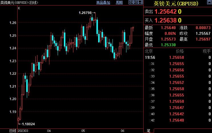 英镑兑美元上涨逾0.8%,盘中创5月11日以来新高至1.2567,周线两连阳。近期公布的英国经济数据相当混杂,主要看点将是下周二(6月13日)发布的就业和工资数据。
