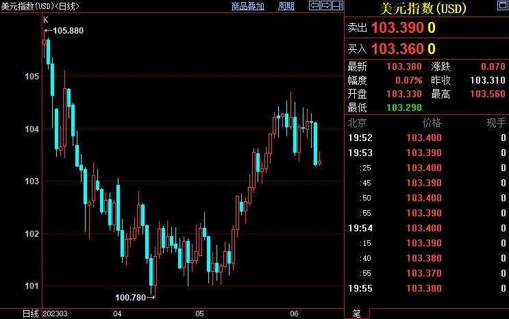美国最近一周初请失业金人数激增,打压美元至逾两周低位103.293,本周累计下跌逾0.4%。即使预计下周美联储会议可能暂停加息,交易员也在权衡再次升息的可能性。