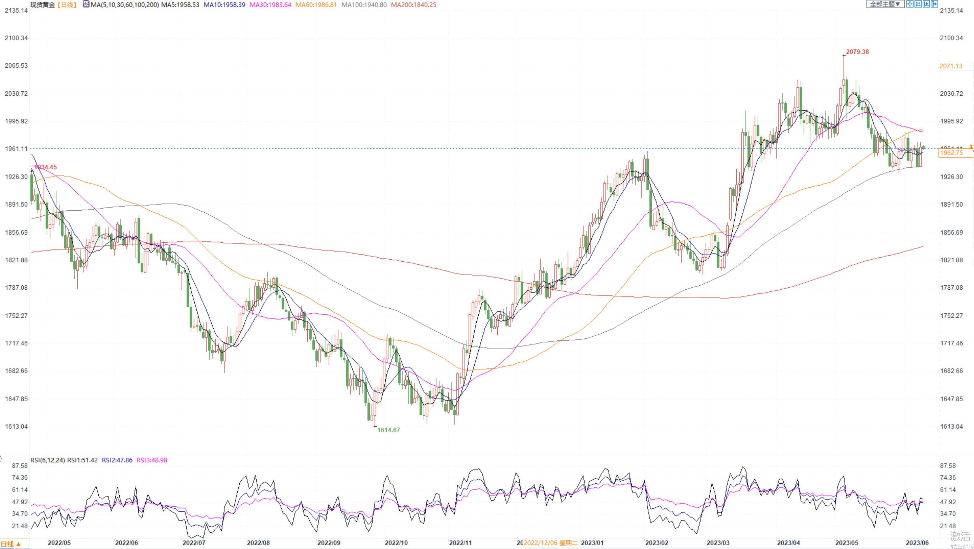 汇通财经APP讯——周五(6月9日)当周金价震荡小幅攀升,金价在1960美元附近持稳,市场在耐心等待下周美联储6月决议。美联储6月不加息的预期升温,这支持金价本周上涨。此外,全球经济放缓的担忧,以及表现不佳的美国数据也支持了金价。