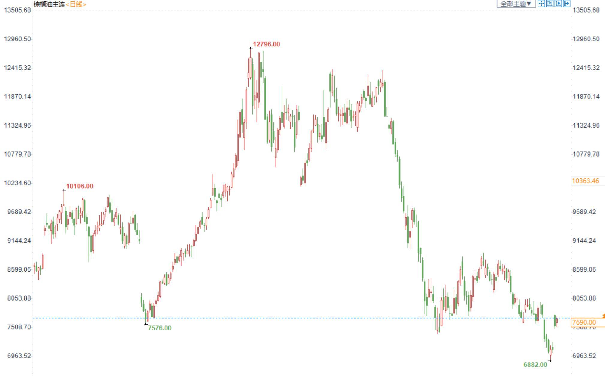 棕榈油2301合约日内涨1.94%,收盘7690元/吨;广州市场棕榈油8050元/吨。