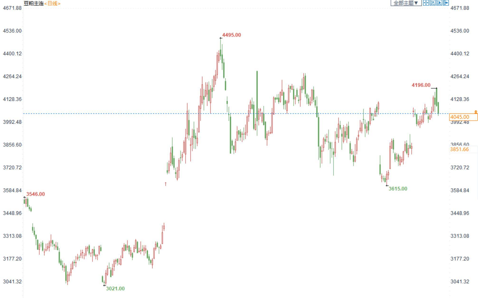 豆粕2301合约日内跌1.17%,收盘价4045元/吨,现货张家港43%蛋白豆粕5285元/吨。