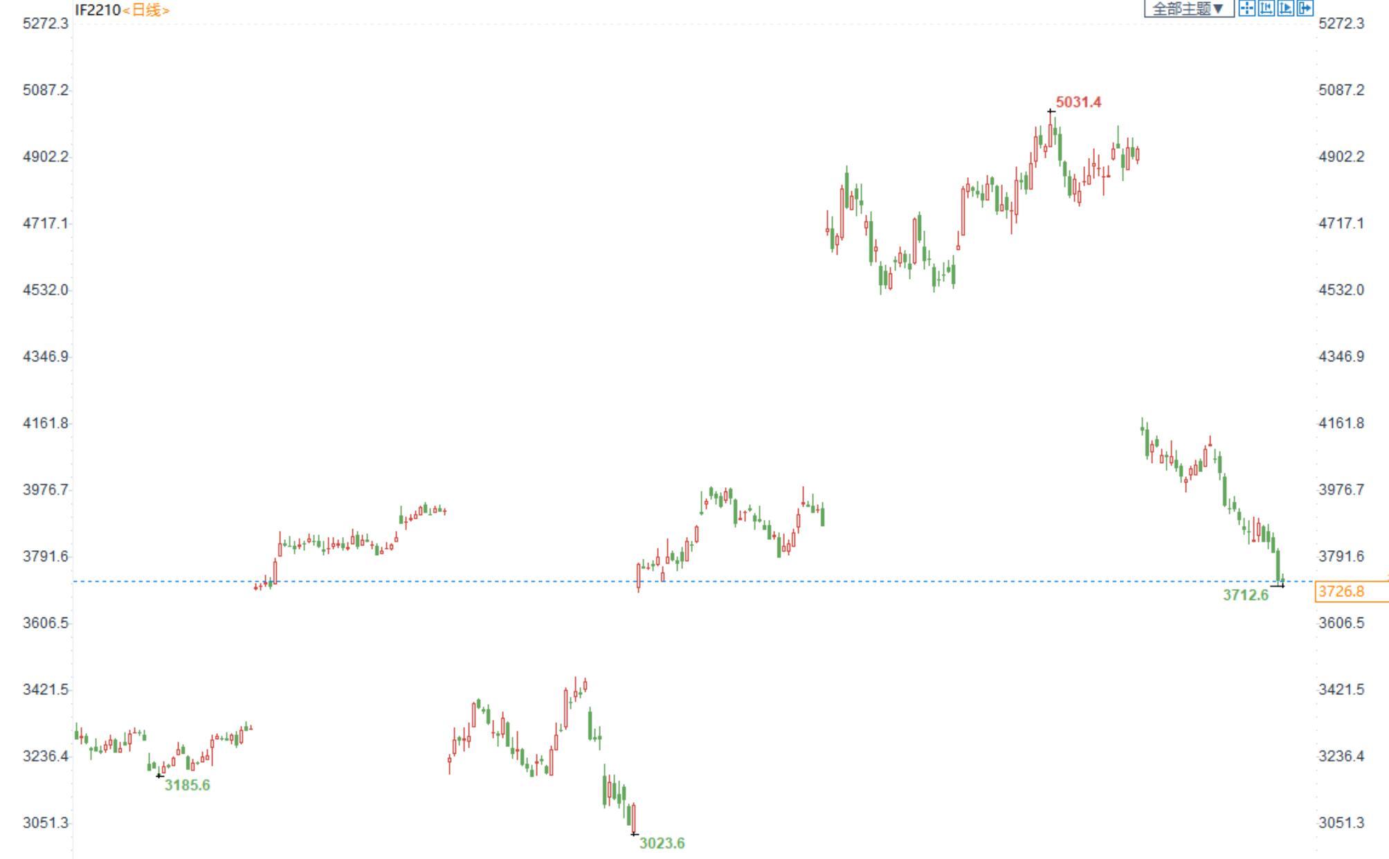 【今日行情】四大期指涨跌互现。IH2210收盘价为2538.4,收跌0.47%;IF2210收盘价为3726.8,收跌0.06%;IC2210收盘价为5682.8,收涨0.70%;IM2210收盘价为5994.2,收涨0.27%。宁德时代披露三季度业绩预告,同比增长169.33%-199.94%,再创单季度盈利最高记录,业绩盈利为市场带来一定暖意。今日市场窄幅震荡,上证综指收十字星,初现止跌迹象。在宁德时代业绩预告的影响下,市场对新能源板块的业绩预期乐观,使得IM和IC略强于IH。板块方面,电力和新能源板块涨幅居前,地产以及消费者服务继续领跌。市场缩量止跌,成交额较昨日减少600亿元至5643.80亿元,继9月30日(5616.29亿元)后,年内量能第二次降至6000亿元之下。