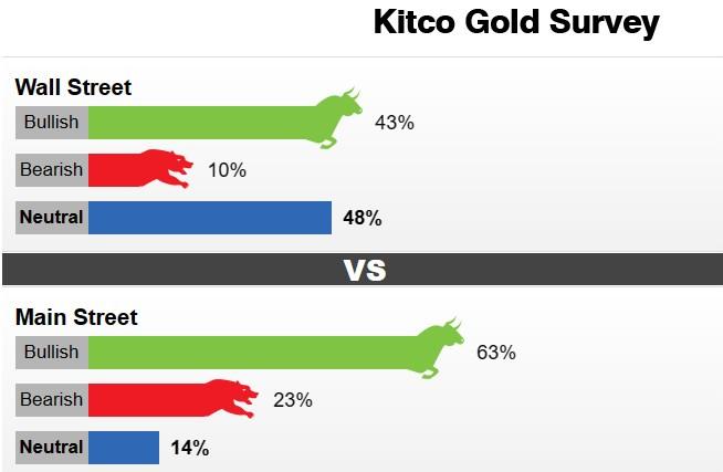 最新的Kitco黄金周度调查显示,分析师对黄金后市走势的预期分歧较大,但短期内普通散户投资者仍看好黄金。上周,21位华尔街分析师参加了Kitco黄金调查。在参与调查的分析师中,9位(43%)分析师看好黄金近期走势。与此同时,2位(占10%)分析师看空未来一周前景,10位(占48%)分析师认金价将横盘整理。