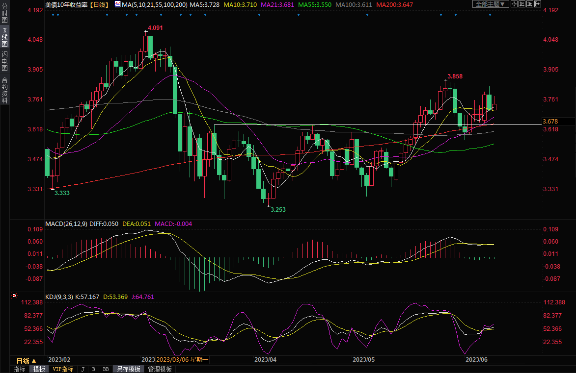 美国国债收益率上周五转上涨,市场预计美联储将在本周暂停激进加息,但维持鹰派立场,因美联储仍对高通胀保持警惕。在数据显示加拿大5月就业岗位意外减少,其失业率在九个月内首次上升后,收益率短暂下挫。在澳洲和加拿大央行上周意外加息后,这份意外的就业报告令美国市场不安。“他们的加息已经真正遏制了通胀,然后他们停止加息,然后通胀不再走低,可以说是回升,这有点讽刺,”Aptus Capital Advisors的固定收益投资组合经理John Luke Tyner说,“我确实想知道我们是否会处于同样的环境。”