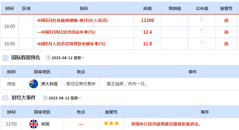 预计美联储将在6月13-14日的会议上保持利率不变,但可能会继续保持鹰派立场,暗示可能在7月加息,美国通胀仍持于2%的目标之上。