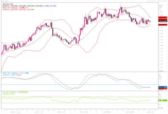 周一(6月12日),在美国通胀数据(CPI)和美联储利率决议公布前,投资者持谨慎心态,因此黄金走势延续了近期的窄幅震荡的谨慎走势,整个交易日里高低波幅仅18个美元,收盘于近期震荡区间的中性水平1957.31美元/盎司。