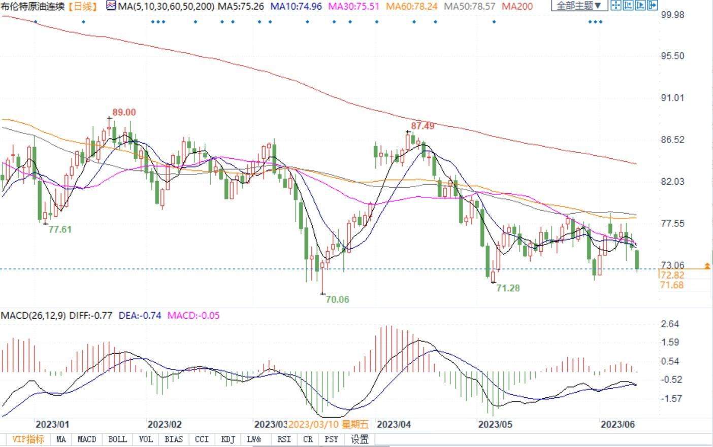 布伦特原油主力合约日线图)