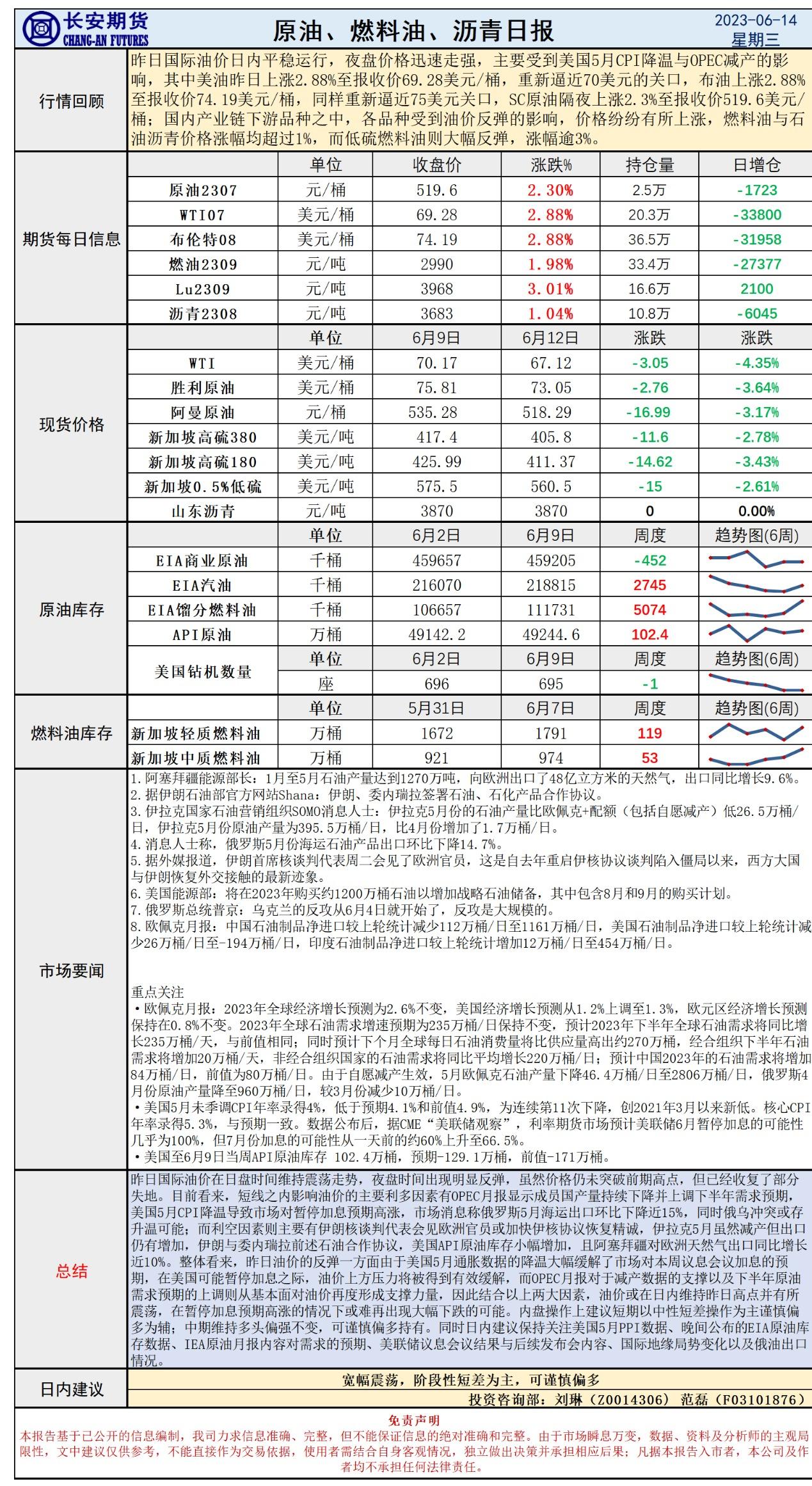 标题:长安期货6月14日原油早评:5月通胀降温OPEC上调需求预测,油价反弹后或维持震荡