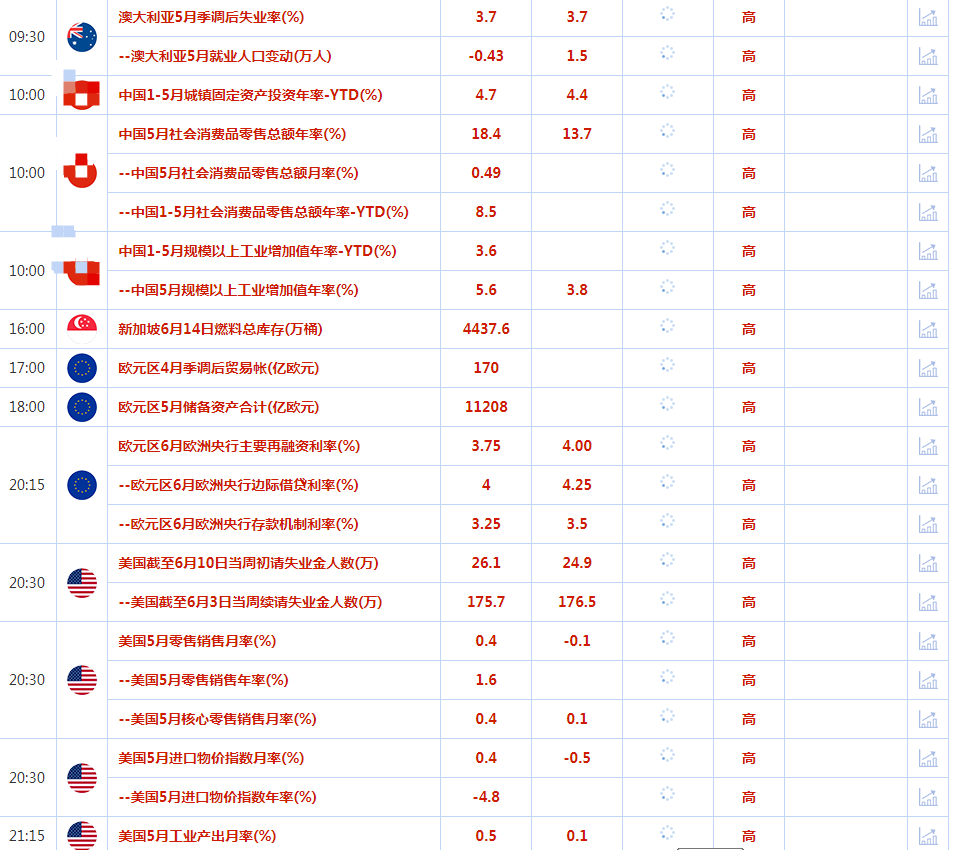 欧洲央行的利率决定将在周四公布,市场预计将加息25个基点,并在7月再加息一次,然后在今年余下时间暂停。日本央行将于周五宣布货币政策决定,预计将维持其超鸽派立场和收益率曲线控制政策。