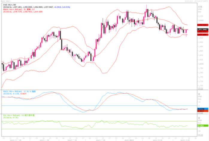 周四(6月15日),欧洲央行一如预期将利率提高了25个基点,至3.5%,为22年来最高。欧央行的举动使美元在汇市上大幅回落,拜其所赐,黄金获得低位反弹动能,当日回升了0.79%,收盘于1957.48美元水平。当日最低曾落至1926.24美元,最高触碰1960.24美元。