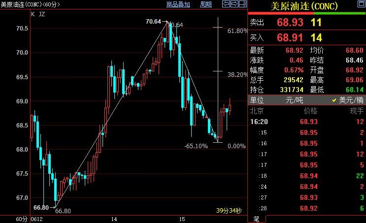 NYMEX原油短线上看69.61美元