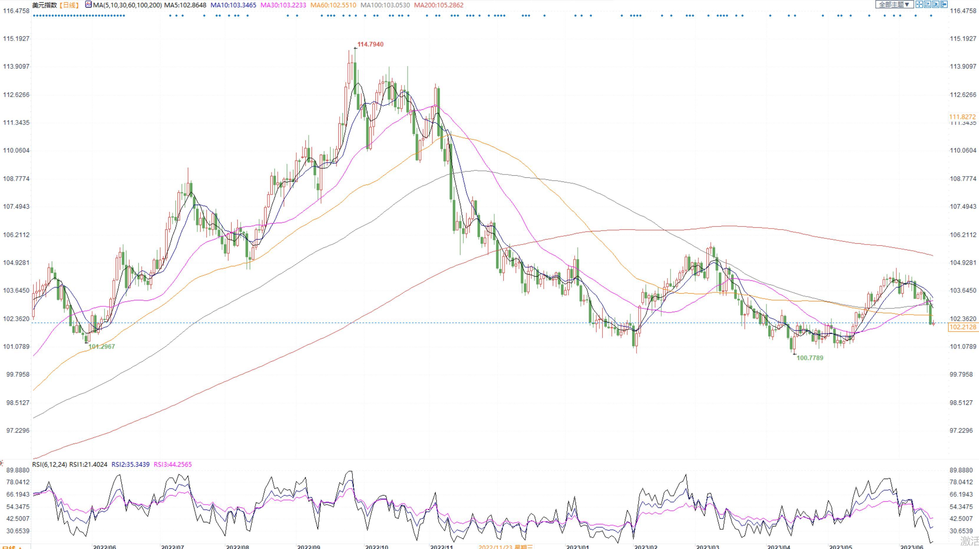 美元指数本周回落,欧美央行政策差异,以及美国通胀回落,施压美元
