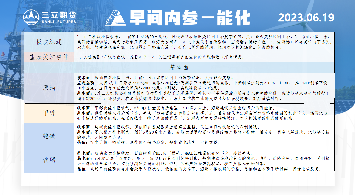 标题:三立期货6月19日早间内参——能化