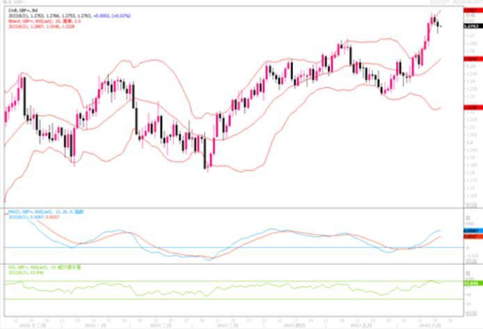 继续下跌0.14%,报1.2770。市场研究机构Kantar周二发布的最新行业数据显示,6月英国食品杂货价格同比涨幅小幅放缓,为连续第三个月下跌,略为减轻消费者的民生成本危机压力。周三英国将公布5月份关键通胀数据。若最新通胀数据显示明显下降,可能对周四英国央行货币政策委员会的利率决定有重大影响。从而有可能削减市场对于英国央行加息的押注。日内须密切关注英国通胀数据对于英镑的影响。短线4小时图上,英镑出现高位调整回落的走势形态,目前暂时在1.2720附近获得支撑。若周三的通胀数据低于预期,将可能导致英镑进一步的退潮回落。相反,若数据依然显示强顽,英镑/美元有机会继续逞强。