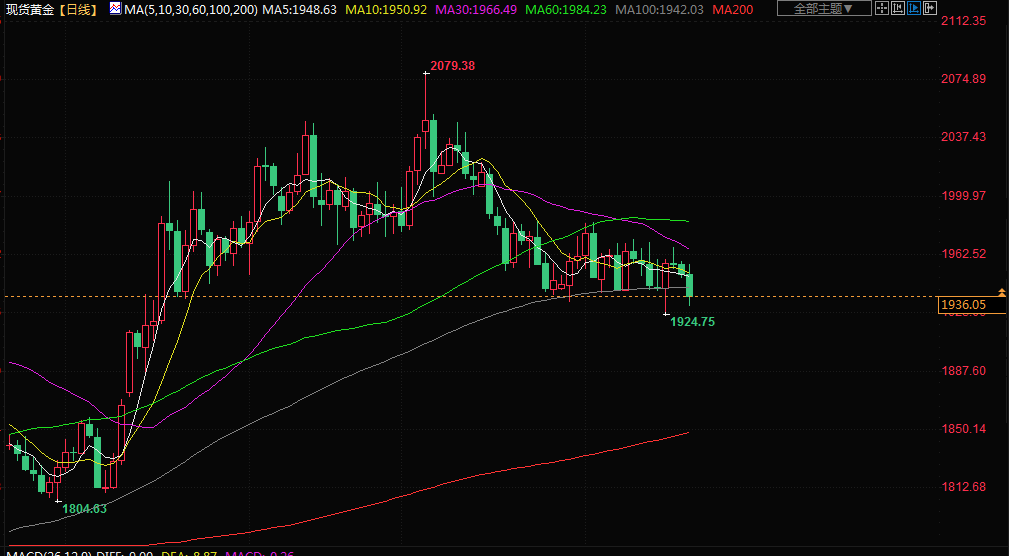 商品收盘情况:美国期金收跌1.2%,结算价报1947.7美元。8月