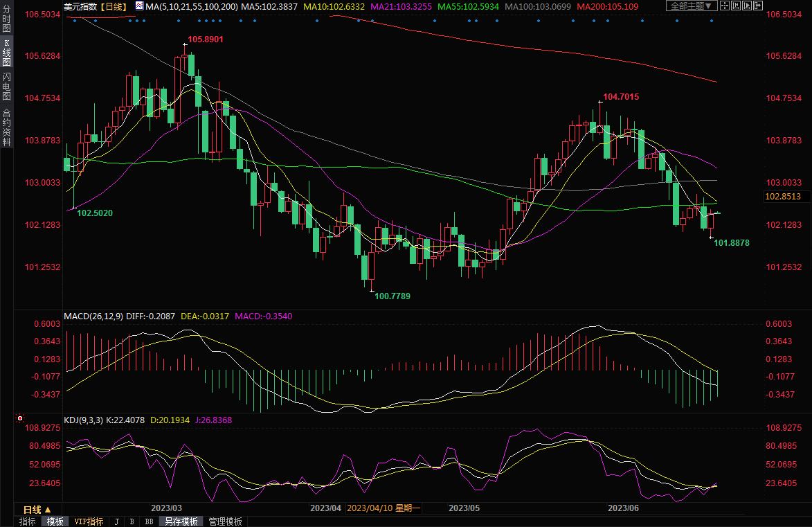 美元指数周四盘中一度下探至101.88,为5月11日以来新低,但随后扭跌为涨,收盘上涨0.31%,至102.40。周五亚市窄幅震荡,目前交投于102.39附近。