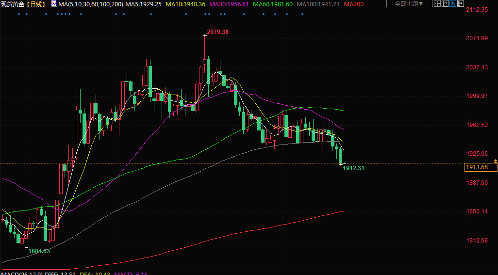 白银下跌0.9%,至每盎司22.43美元,铂金下跌2%,至每盎司922.44美元,两者均触及数月最低。钯金重挫4.8%,至每盎司1282.39美元,为2019年5月以来最低。