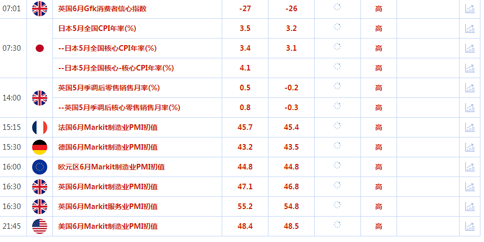 汇通财经APP讯——北京时间周五(6月23日)美元兑一篮子货币周四上涨,此前美联储主席鲍威尔支持美国进一步加息,但要以“谨慎的步伐”进行,同时多家央行接连加息加剧了对全球增长前景的担忧,金价下跌近1%,触及三个月最低;油价下跌约4%,英国央行加息幅度大于预期,引发人们对经济和燃料需求的担忧,盖过了美国石油库存意外减少带来的支持。