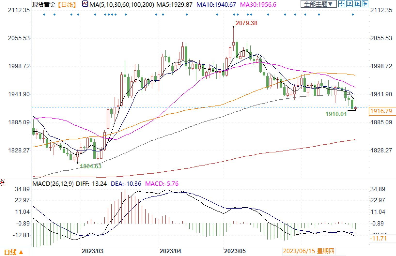 鲍威尔周四作证后,黄金市场触及三个月低点1922.60美元,美联储关注的是服务行业的通胀和紧张的劳动力市场。