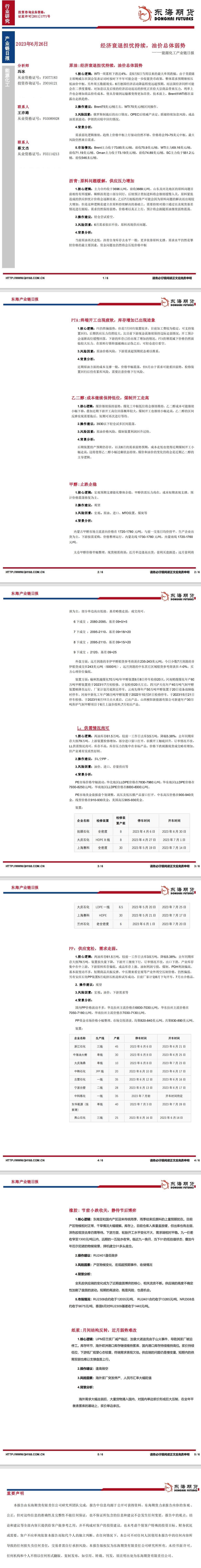 【东海期货6月26日产业链日报】能化篇:经济衰退担忧持续,油价总体弱势