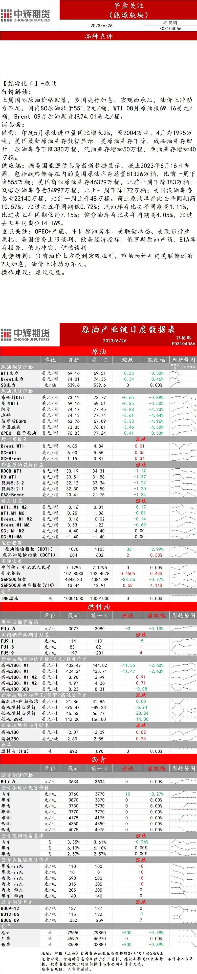标题:中辉期货能源早盘关注:油价上冲动力不足,建议观望