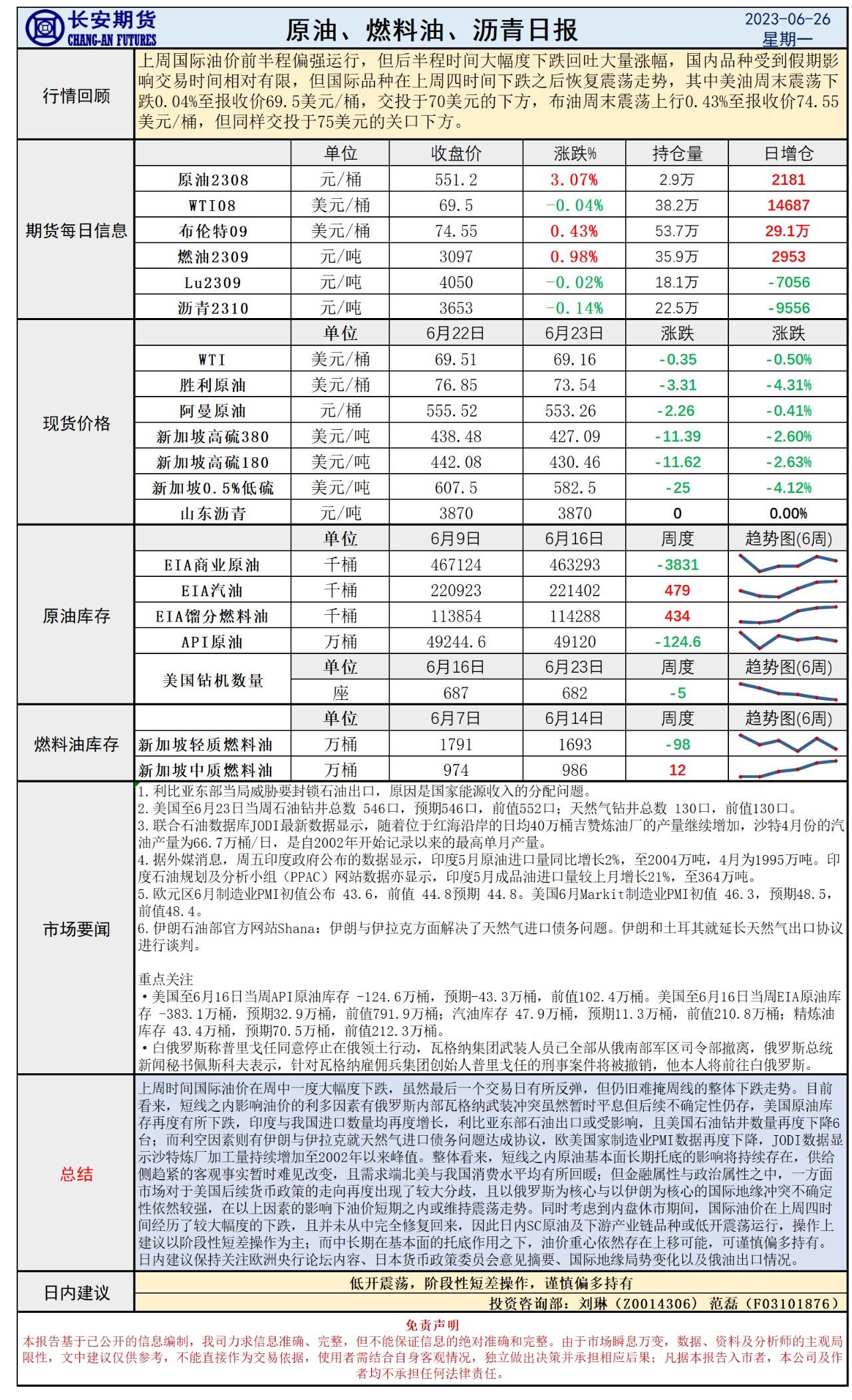 标题:长安期货6月26日原油早评:地缘冲突再添不确定性,需求前景或仍需数据验证