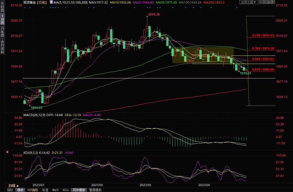 目前来看,金价再度逼近1910关口的关键支撑,技术面看空信号有所增加,后市下破该支撑的可能性较大,短线可能会进一步试探1900关口支撑,一旦跌破该支撑,中线可能会进一步跌向200日均线1855附近。本交易日需要继续关注美国总统拜登讲话和全球央行官员的讲话,留意美国5月批发库存月率初值。
