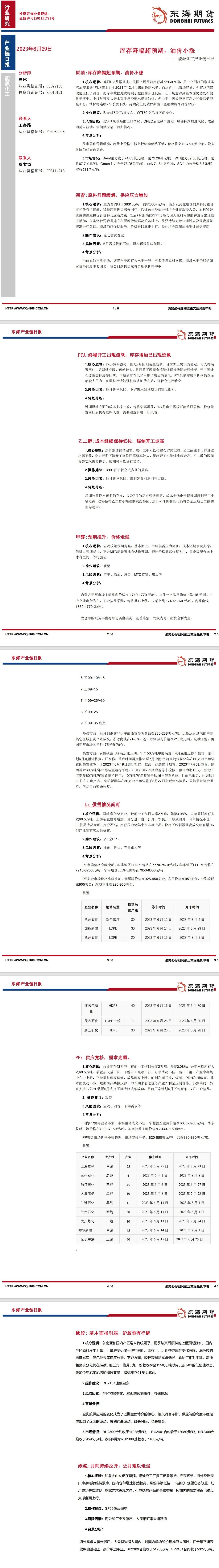 标题:【东海期货6月29日产业链日报】能化篇:库存降幅超预期,油价小涨