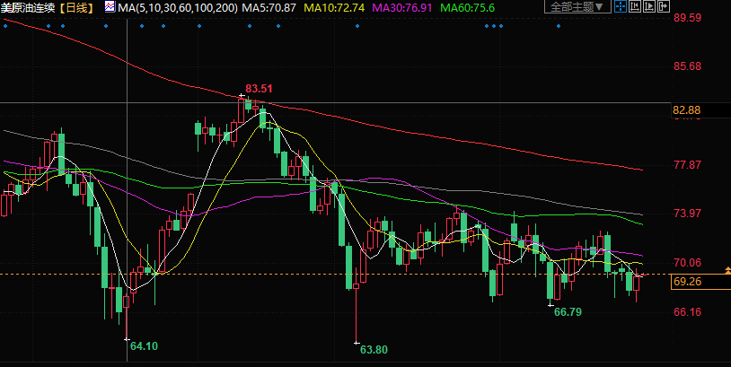 美原油交投于69.36美元/桶附近;油价周三攀升约2%,此前报告显示美国原油库存连续第二周下降,且降幅大于预期,盖过了进一步加息可能减缓经济增长并令全球石油需求减少的担忧。