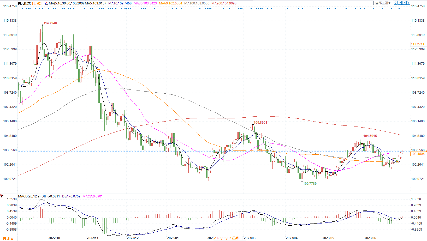 欧洲央行行长拉加德本周在辛特拉论坛上表示,欧元区通胀已进入一个新阶段,劳动市场和就业增长表现强韧,导致薪资加速增长,从而令通胀面临上行压力,可能会在高档逗留一段时间,因此央行需要保持紧缩政策。其他参加论坛的七位欧洲央行决策官员的谈话显示,尽管有迹象表明欧元区经济正趋疲弱,但多数人预计在7月和9月会议上欧央行将再次加息。