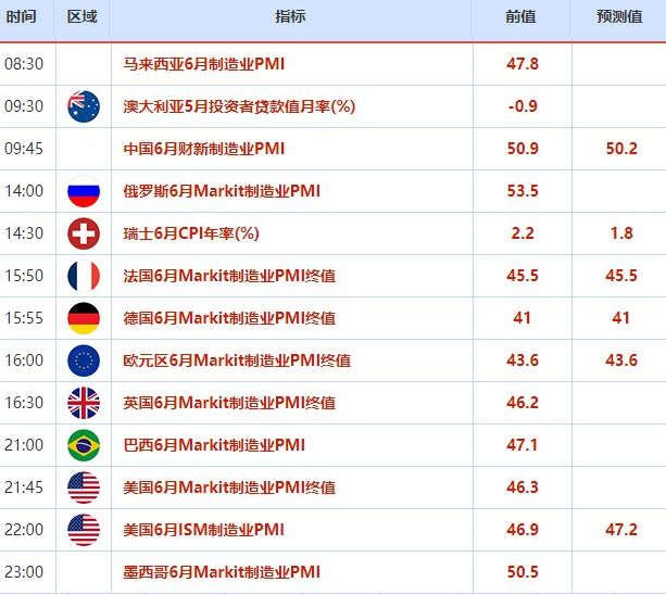 周一将出炉美国6月ISM制造业PMI数据,投资者需要重点关注。