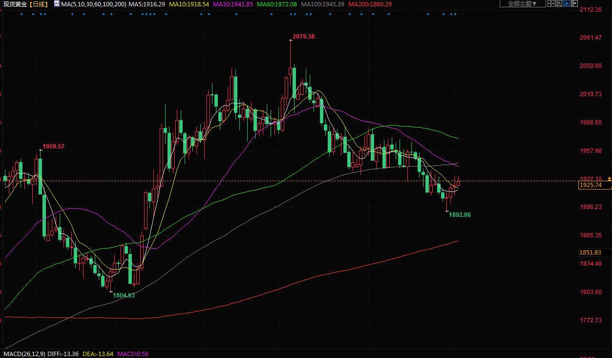 现货银上涨0.6%,至每盎司23.02美元,钯金攀升0.8%,至每盎司1,.92美元。铂金跳涨1.4%,至每盎司919.06美元,并有望连续第三个交易日上涨。