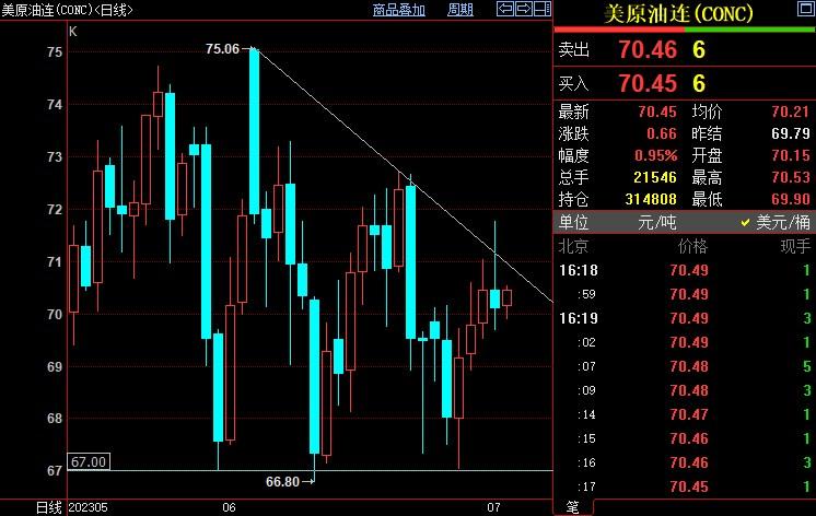NYMEX原油上看71美元关口