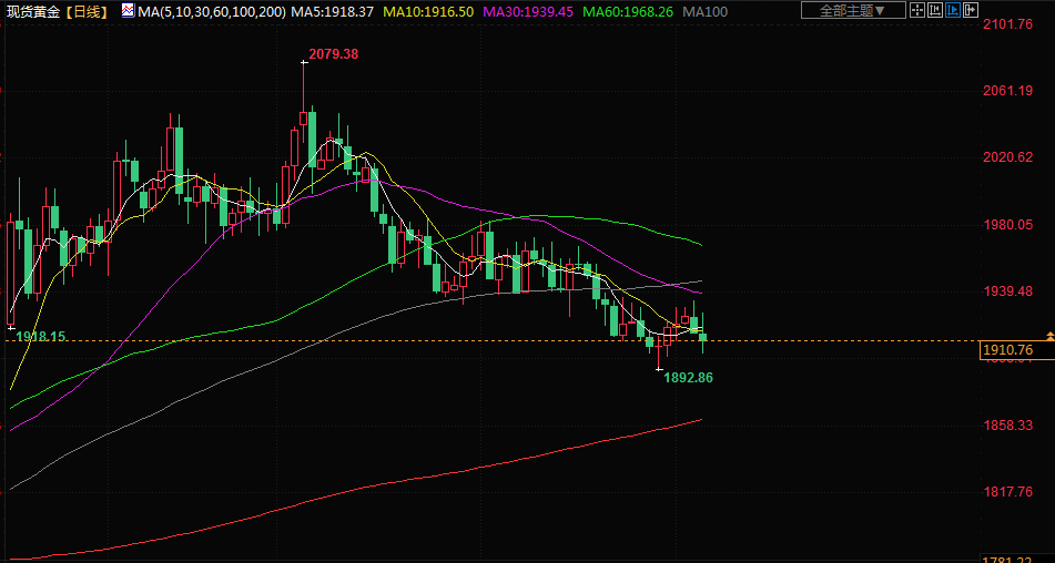 人们仍关注周五的美国非农就业报告,以了解有关美联储加息路径的更多线索。白银下跌1.8%,至每盎司22.68美元,铂金下跌1.4%,至902.66美元,钯金下滑1.3%,至1244.09美元。