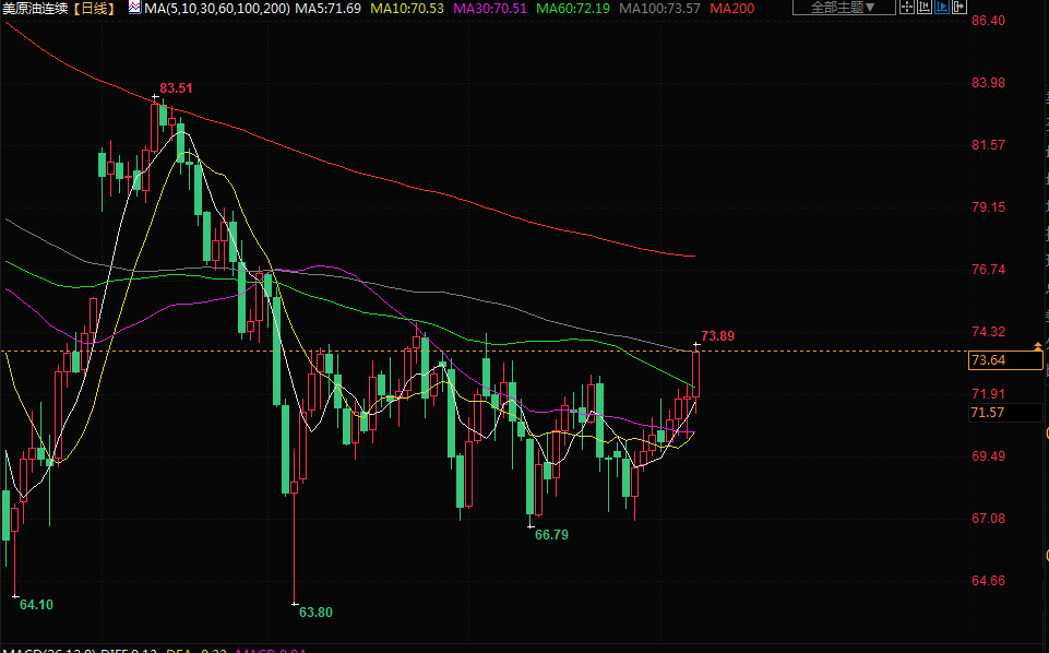 布伦特原油期货上涨2.6%,结算价报每桶78.47美元,美国原油期货上涨2.9%,结算价报73.86美元。