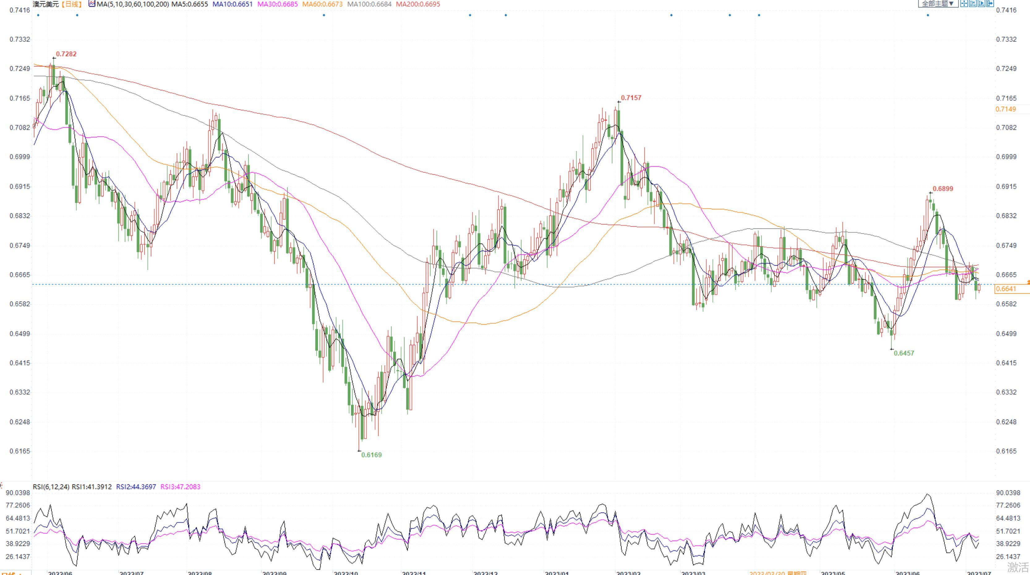 澳元兑美元本周基本维持震荡走势,澳洲联储本周决议维持利率不变