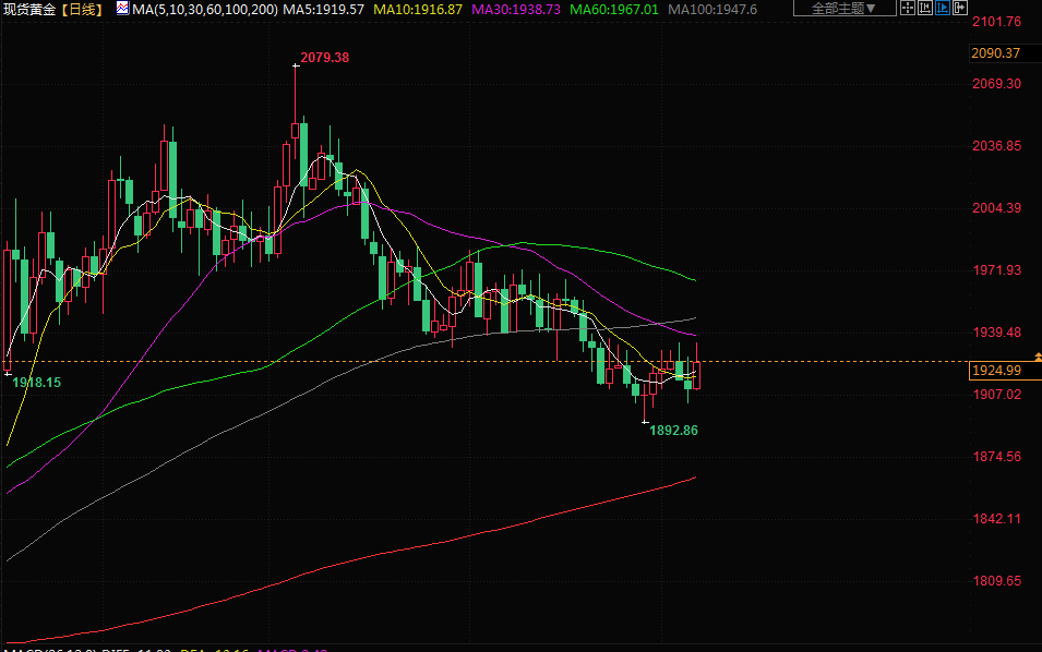 纽约独立金属交易商Tai Wong说, “黄金买盘保持稳固,甚至在该数据之前就已经交易走高。今天的报告给了多头一些安慰,至少是短期的,黄金应该能够持于1910美元以上,但真正的考验是1950-60美元的水平,100和200日移动均线在此交汇。该报告并没有软到足以支撑反弹到那种水平。”