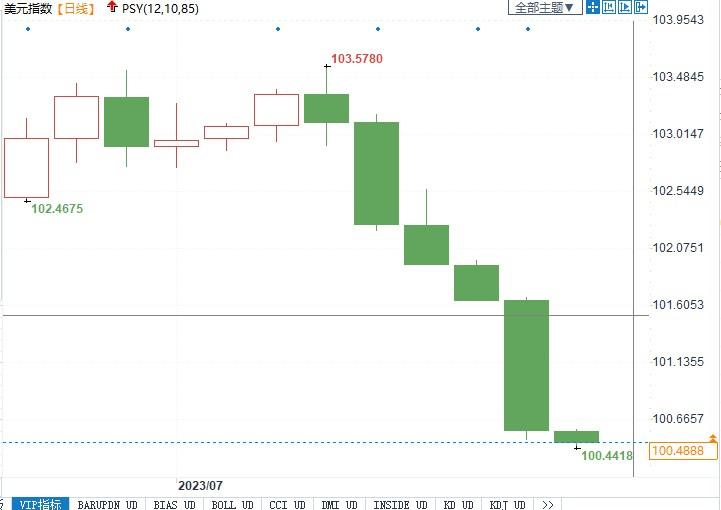 技术图显示美指将进一步下跌,首个支撑位在95点