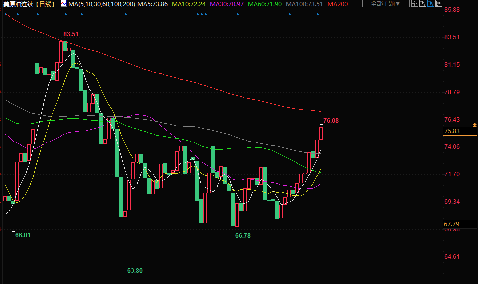 布伦特原油期货价格自5月份以来首次突破每桶80美元。