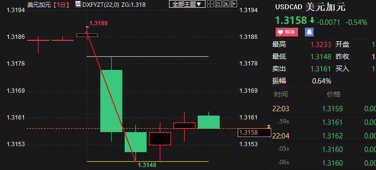 标题:加银如期加息并上调通胀预测,美元兑加元跳水近40点
