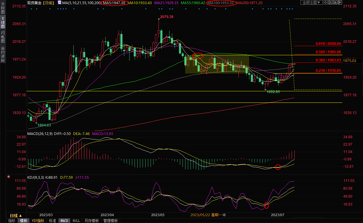 现货黄金高位窄幅震荡,目前交投于1962.36美元/盎司附近,不过,初请失业金人数不及市场预期,美联储理事沃勒仍未美联储年内仍需再加息两次,欧洲央行会议纪要显示欧洲央行决策者对7月之后进一步加息持开放态度,令黄金多头仍有所顾忌。